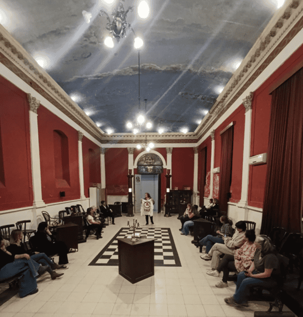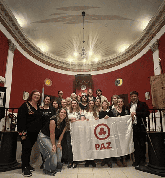 Entrega de la Bandera de la Paz a un Grupo de Mujeres en el histórico Templo Masón de la ciudad de Santa Fe.