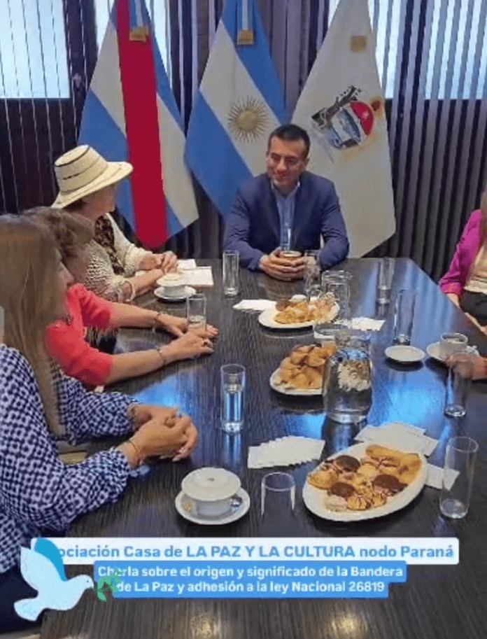 El miércoles 15 de octubre mantuvimos una audiencia con el Viceintendente de la ciudad de Paraná Don Sergio David Cáceres en compañía de Luisina Minni concejal del P.J. y Silvia Campos concejal del PRO, para presentar nuestras actividades como Nodo Paraná y hacerles conocer la Bandera de la Paz Cultura.